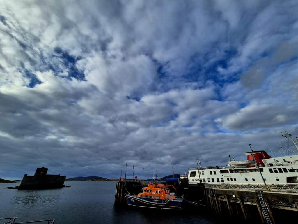 We spent the late afternoon and early evening sailing to Castlebay, Barra where we anchored overnight.
