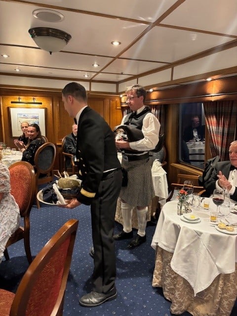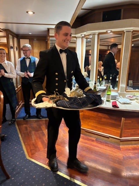 We returned across the Sea of the Hebrides to our overnight tonight in Charlotte Bay where the Farewell Gala Dinner was held.