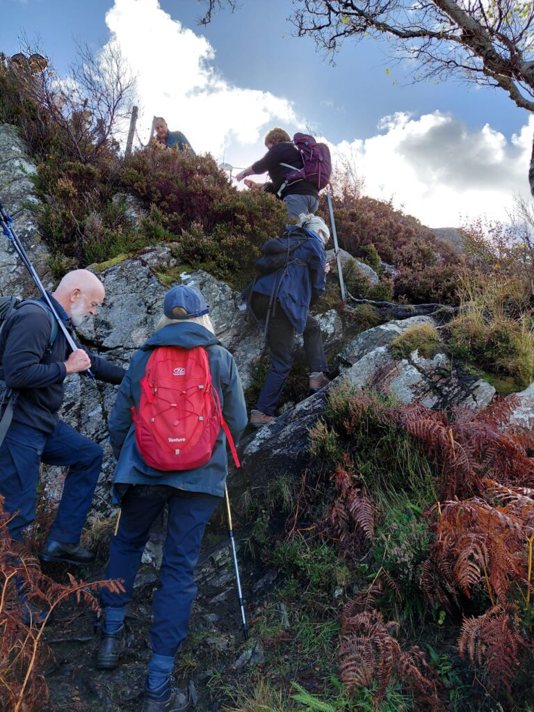 Despite a turn in the weather, the walkers set out once more for a full day ashore – taking a circular walk to explore the geological wonders at Knockan Crag and the views from the summit, followed by a second opportunity later in the morning to climb to the Bone Caves for a picnic – the caves providing welcome shelter from the forecast rain which finally came in over lunch.