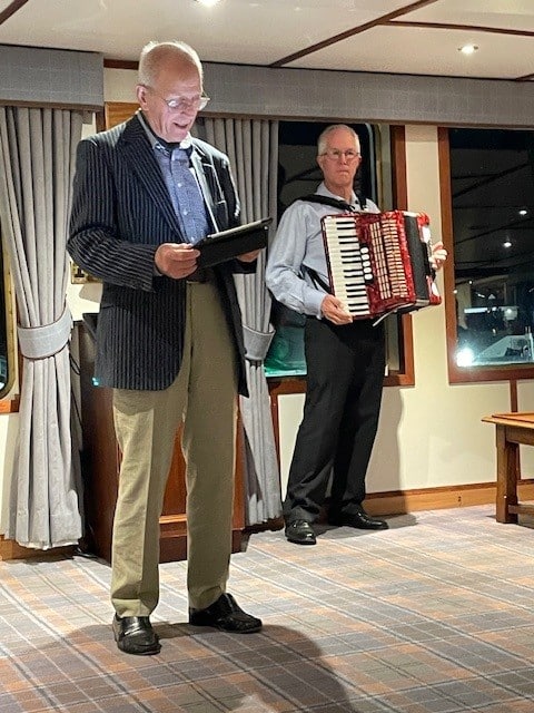 A restful afternoon at sea for everyone as we sailed south alongside Skye and under the Skye Bridge for our evening alongside at Kyle of Lochalsh. Dinner was followed by music, dancing and much laughter courtesy of the talents of our guide John and his accordion, with ‘special guest’ performances by others onboard.