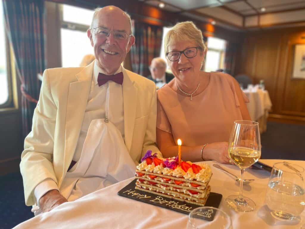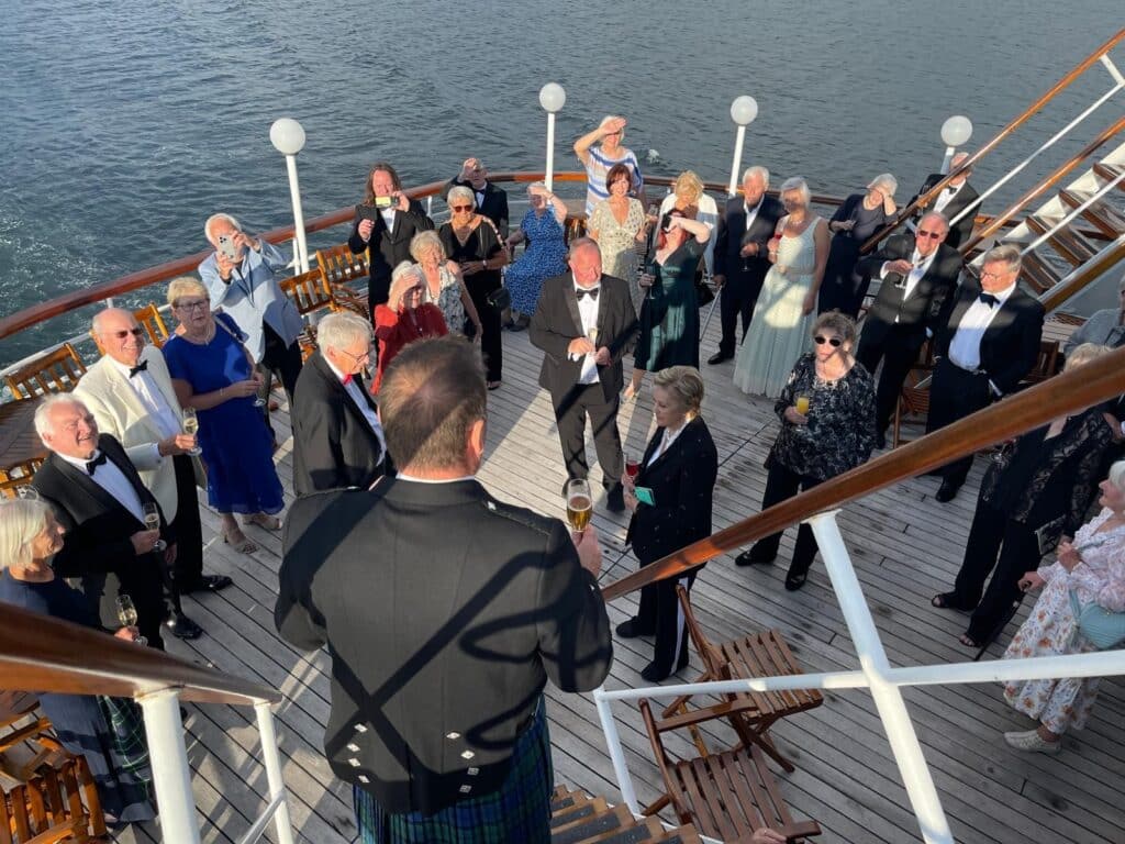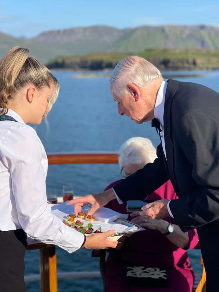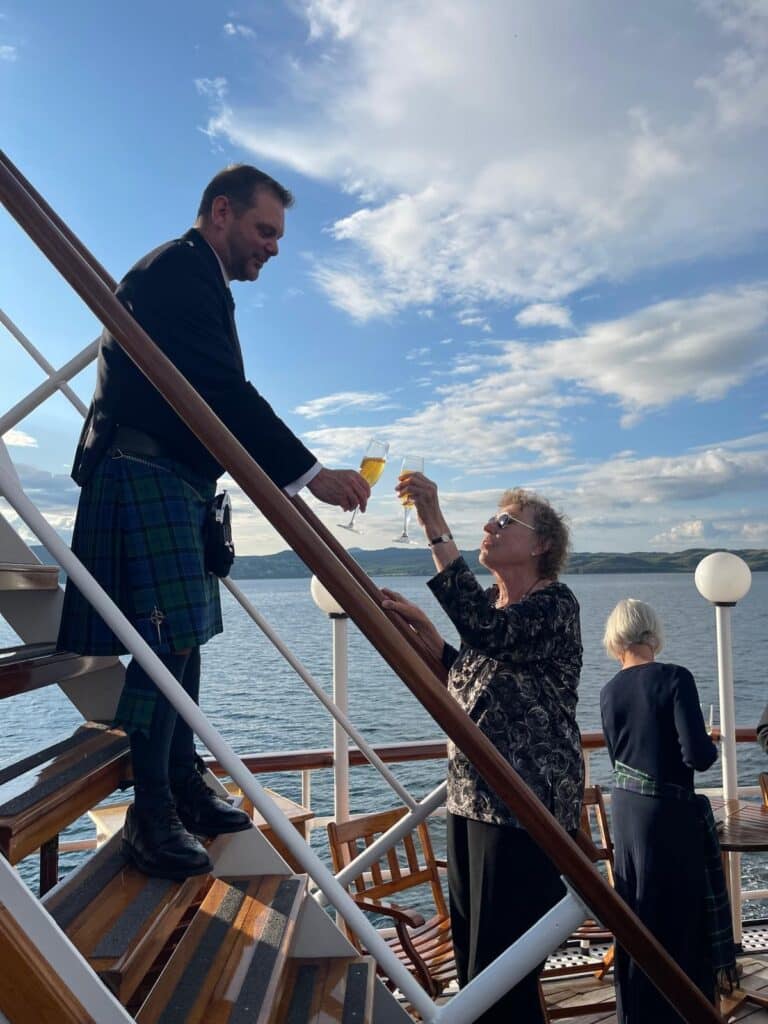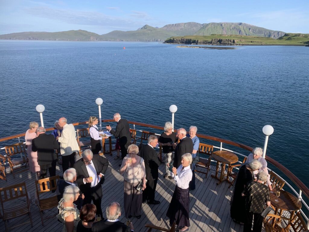 We anchored off the Isle of Canna overnight where the Welcome Gala reception was held out on the Skye Deck and guest Geoffrey Howland celebrated his birthday with a delicious cake.