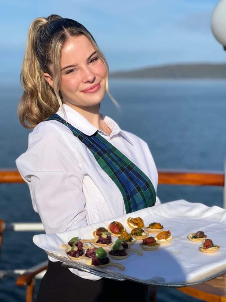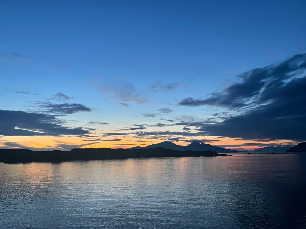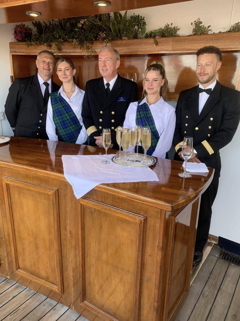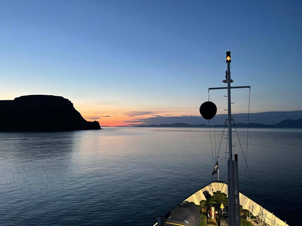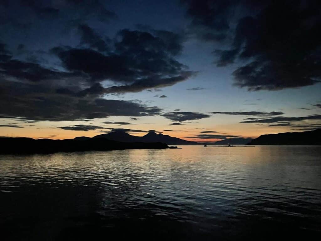 We anchored overnight off the Isle of Muck where the gala reception was held outside on the Skye deck, accompanied by dolphins, rainbows and a spectacular sunset.