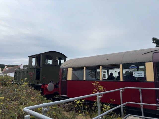 Early this morning we departed St Peter Port, bound for our 5th and final Channel Island, Alderney. We arrived and berthed alongside in Braye, for a visit to the Alderney Railway station for a ride on the train where diesel locomotives pull London Underground carriages to the lighthouse which was built in 1912.