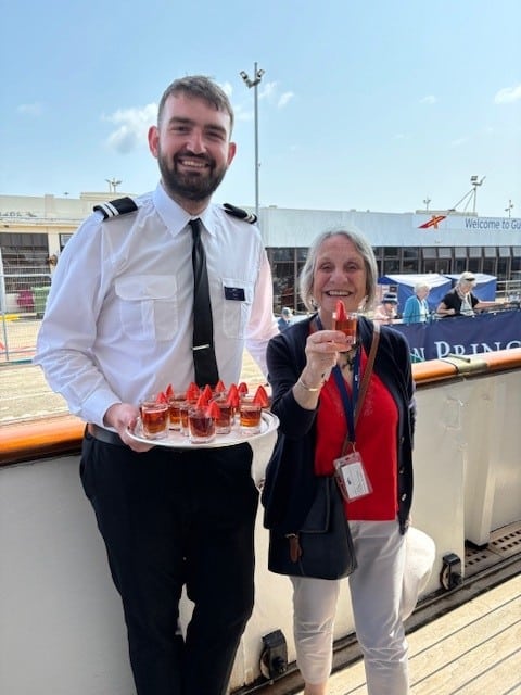 This morning guests were split into groups, one going on excursion in the morning, while the other group can enjoy free time to explore the town. In the afternoon, they were then swapped over! The excursion was by vintage Twinkle bus to visit the Little Chapel, the National Trust of Guernsey Folk & Costume Museum, and Sausmarez Park. During the outing guests had the opportunity to taste traditional Guernsey gache (fruit loaf) with Guernsey butter.