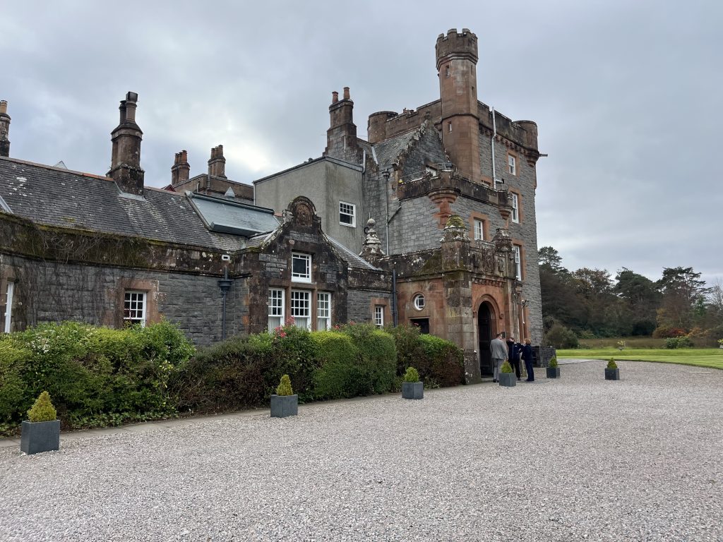 3 lunches ashore – Kinloch Lodge, 3 Chimneys, Eriska – each an interesting place