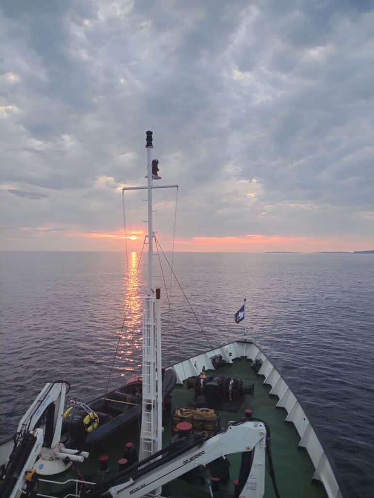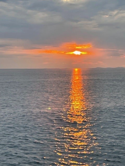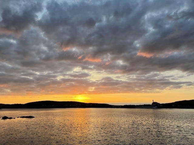 A lovely sunset lit up our evening sail back to the Small Isles where we anchored overnight off the Island of Canna.