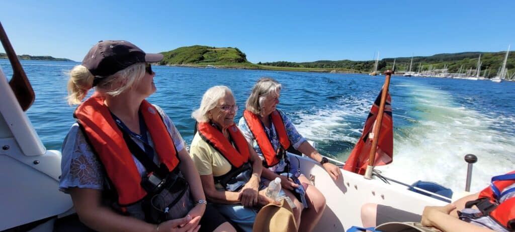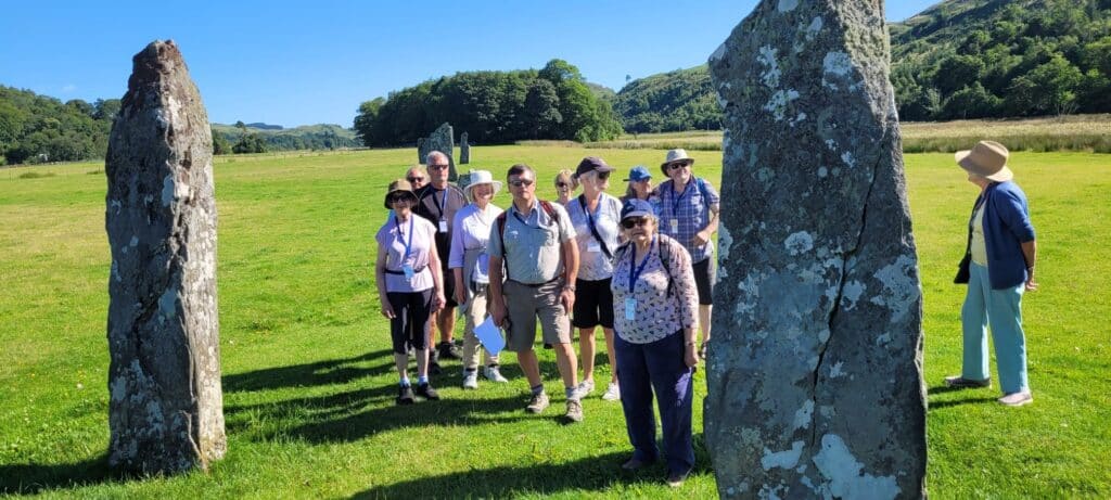 Today was spent enjoying two visits on the mainland: we tendered ashore at Lochgilphead for local walks and a visit to Kilmartin Glen in the morning, and then again at Ardfern in the afternoon for a visit to Arduaine Gardens – where cool shady spots and cold drinks were sought by most!