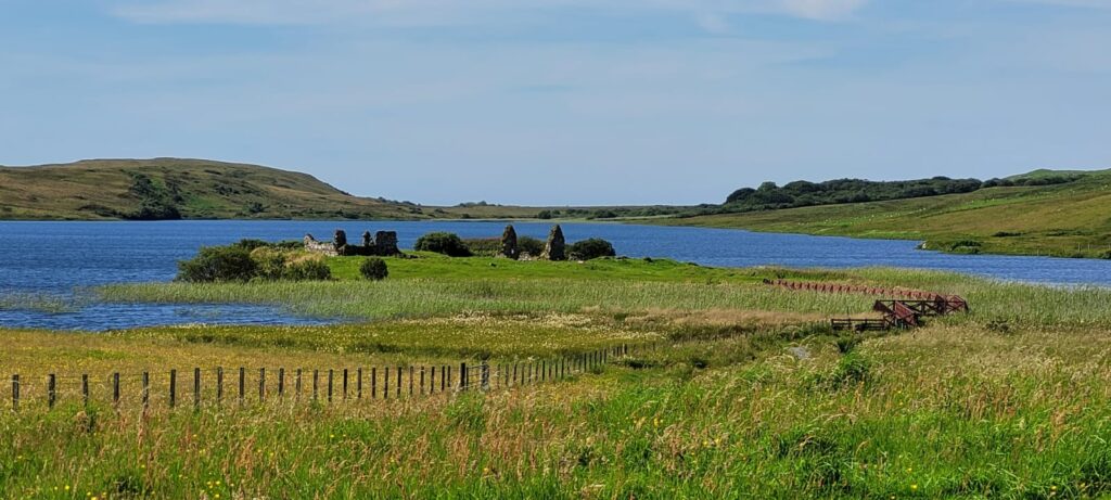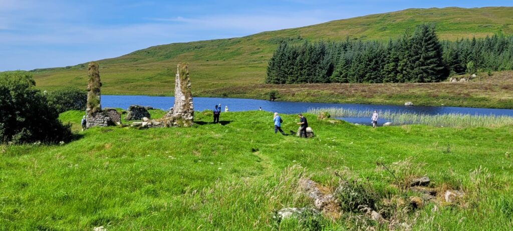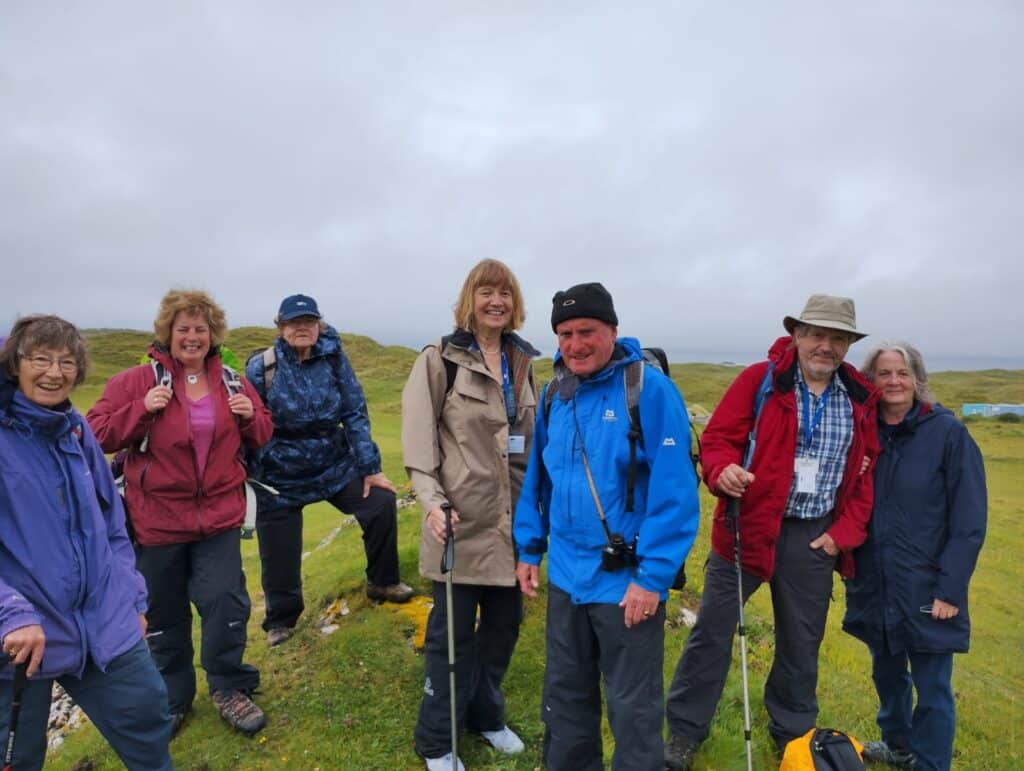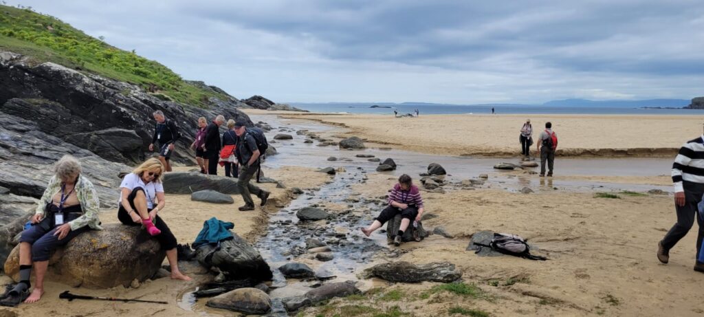 A coach took walkers and strollers to the Finlaggan centre on Islay, strollers staying for a guided visit while walkers went on to Ardnave point for walks in the dunes and beaches (more paddling and swimming) – surrounded by stunning views out beyond the Point.