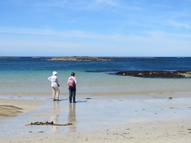 While the walkers crossed the island on foot, the strollers took advantage of a minibus shuttle to Colonsay House. Everyone had the chance to explore the beautiful gardens, and some took the opportunity to venture further, reaching the stunning white sands of Kiloran Bay… several guests braving the water for swimming, and several paddling. The shuttle bus was available to take everyone back to the ship after refreshments in the sunshine on the terrace at Colonsay House.