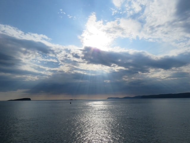 While walkers enjoyed sandwiches, soup and picnic extras, strollers were treated to lunch at the Port Charlotte Hotel after which they took a distillery tour, collecting the walkers on their way back. Their tales of whisky tasting were matched by our debate over the birdlife seen at the RSPB reserve near Ardnave… was it a deer or a duck?! As the evening got warmer and warmer guests relaxed with drink on deck while we sailed into a dramatic sunset on passage to our overnight anchorage off Tayvallich.
