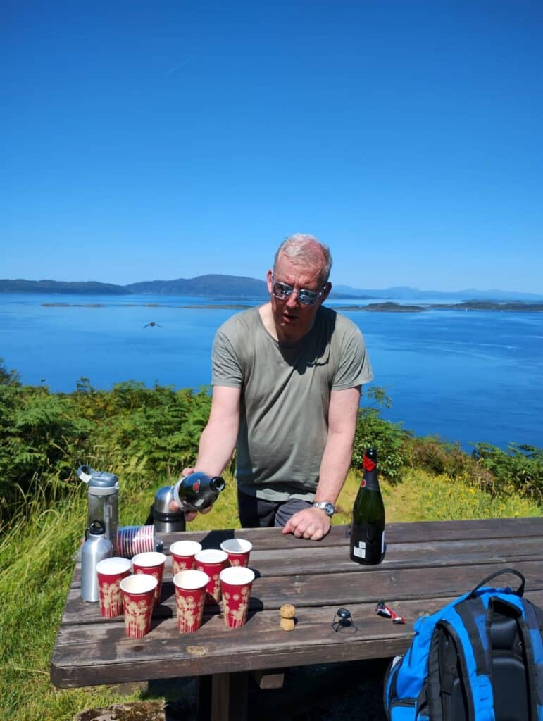 For the walkers, wonderful views, forest tracks, a picnic lunch and much needed cooling drinks and ice creams at the pub in Crinan to round the day off. A gorgeous evening, but a Footloose ‘first’ … guests moving round the ship in the evening to find the shade!