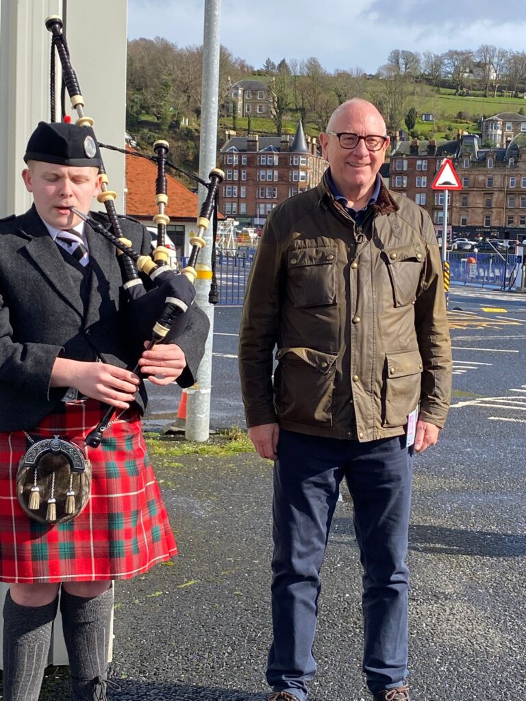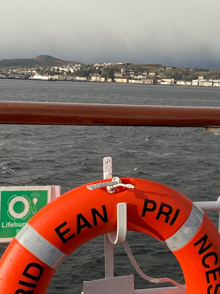 Guests were piped on board in Greenock this afternoon. Following the mandatory safety drill, we sailed to our overnight anchorage in Rothesay Bay, Isle of Bute.