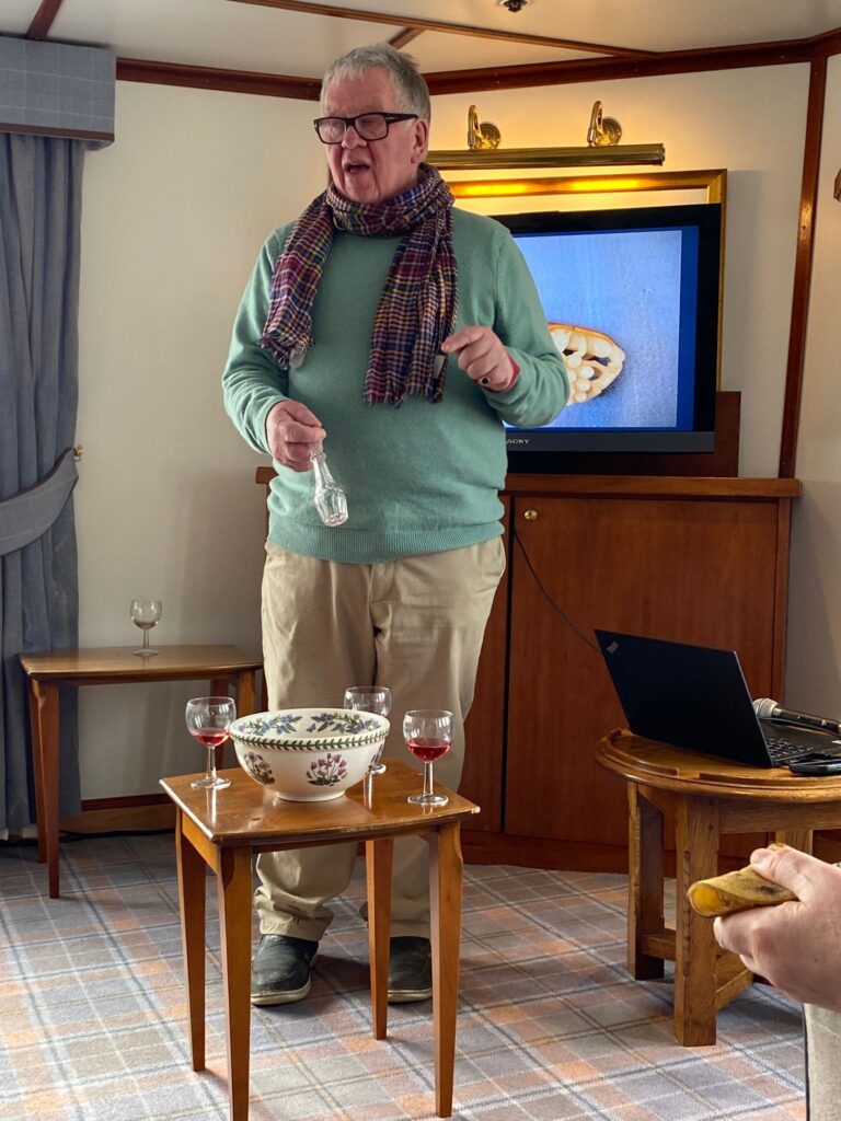 As we spent the morning cruising around the Mull of Kintyre, through the North Channel and into the Sound of Jura, guest speaker Philip Serrell delivered one of his talks in the Tiree Lounge.