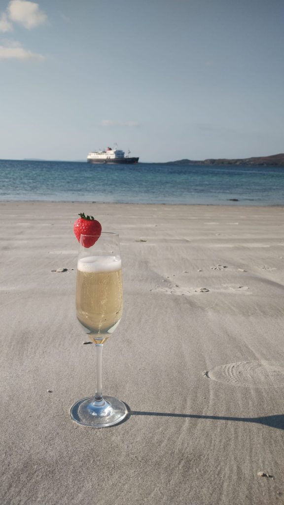 We anchored overnight in the Sound of Eriskay and the Welcome Gala reception was held out on the Skye deck.