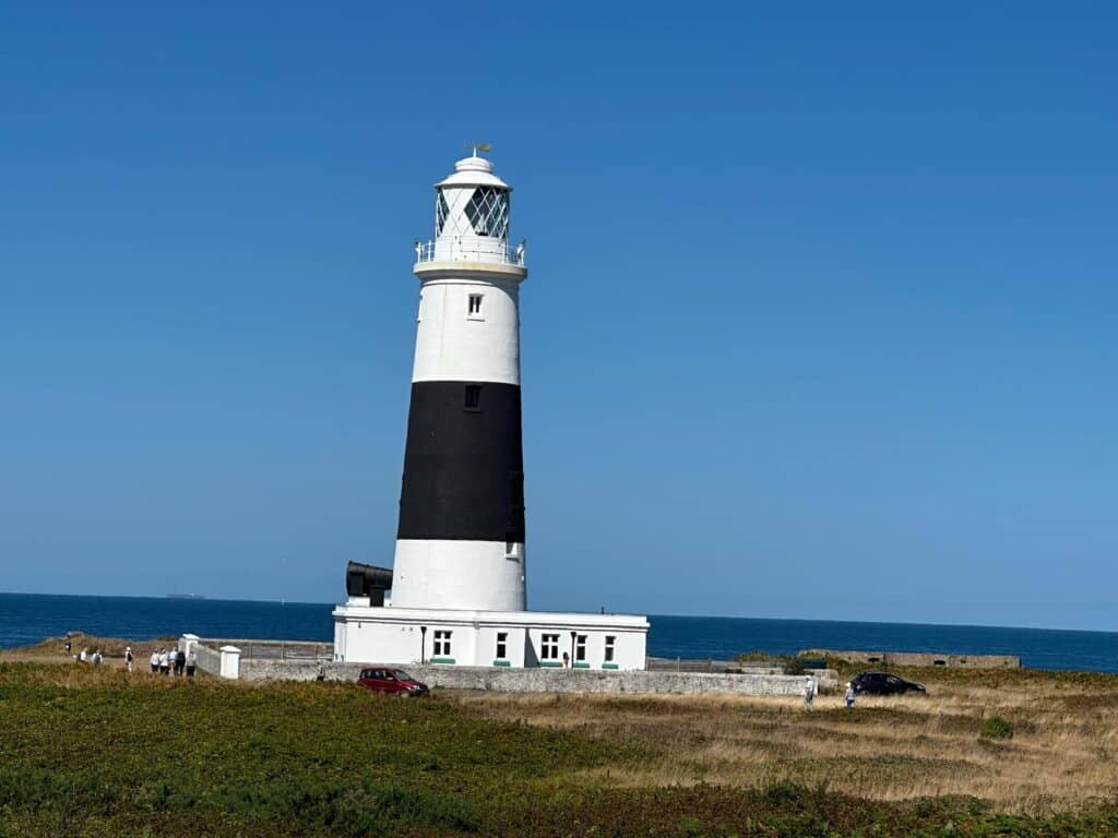 After spending the morning cruising on passage towards the Channel Islands, we arrived and berthed alongside in Braye, Alderney, where guests took a ride on the train from Braye to the lighthouse.