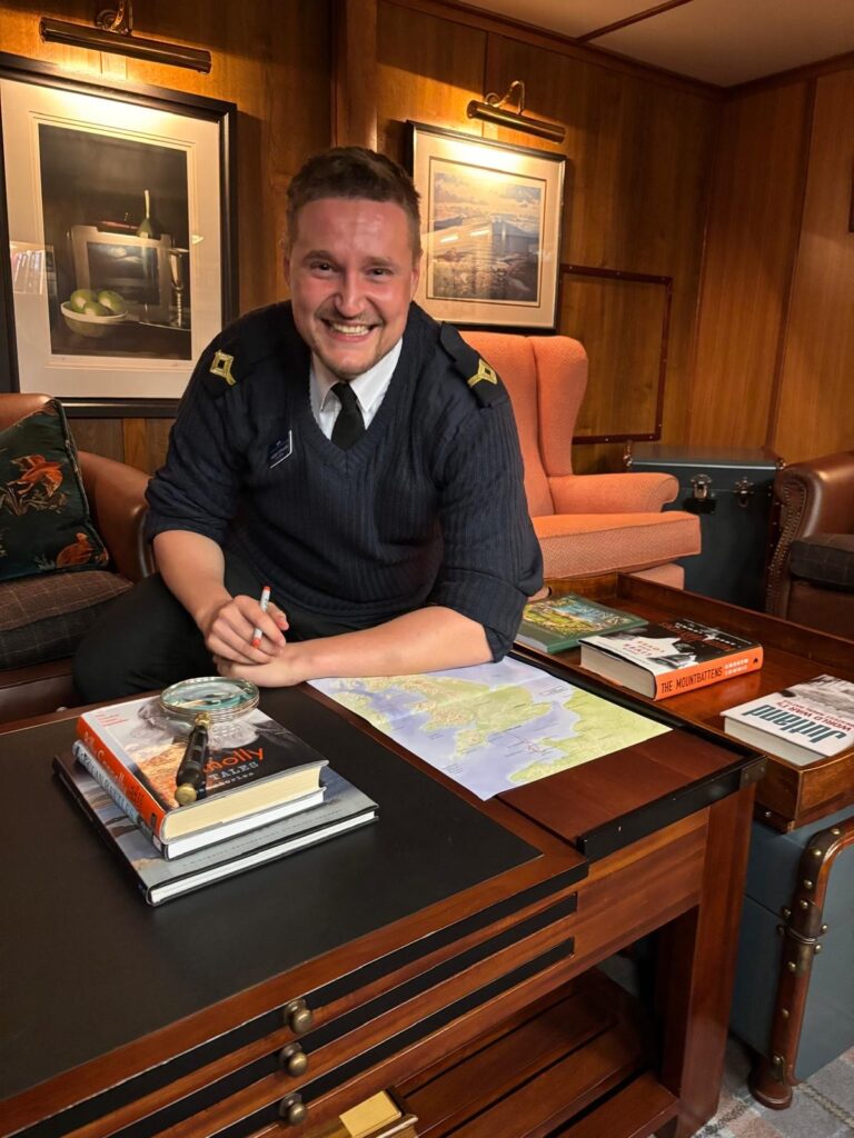 We spent the afternoon cruising on passage towards our overnight anchorage in Weymouth bay. Guests enjoyed Bridge Visits and 3rd Officer Alistair was busy updating cruise itinerary maps for each guest to take home as a souvenir of their voyage.
