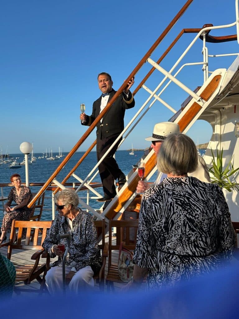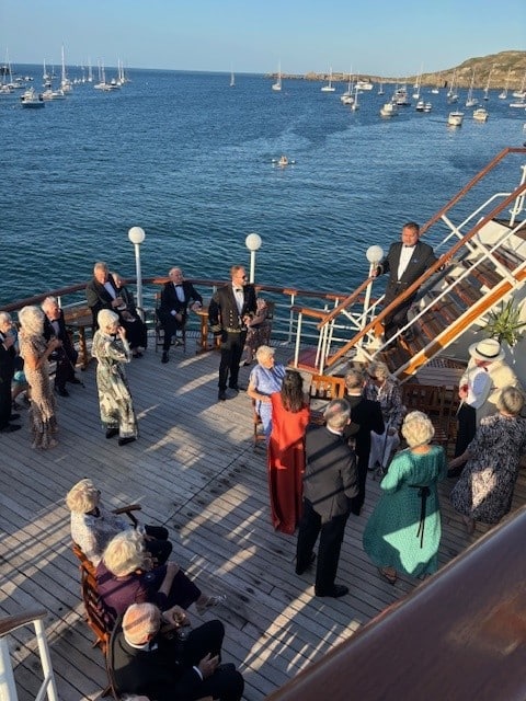 We remained alongside overnight in Braye, Alderney where the Welcome Gala reception was held out on the Skye Deck.