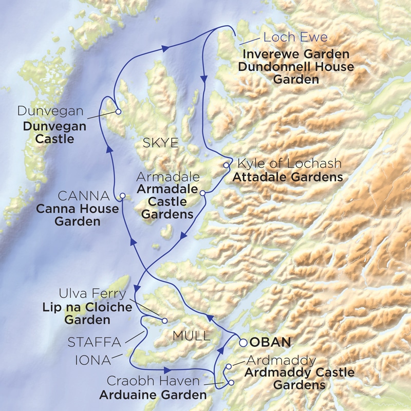 At Inverewe, rare and exotic plants flourish where the Gulf Stream meets the Highlands, creating a surprising coastal garden rich in unusual species. Nearby, Dundonnell House’s ancient walled garden showcases camellias, magnolias, spring bulbs, rhododendrons and a laburnum walk, with vibrant planting throughout the year centred on one of Scotland’s oldest yew trees.