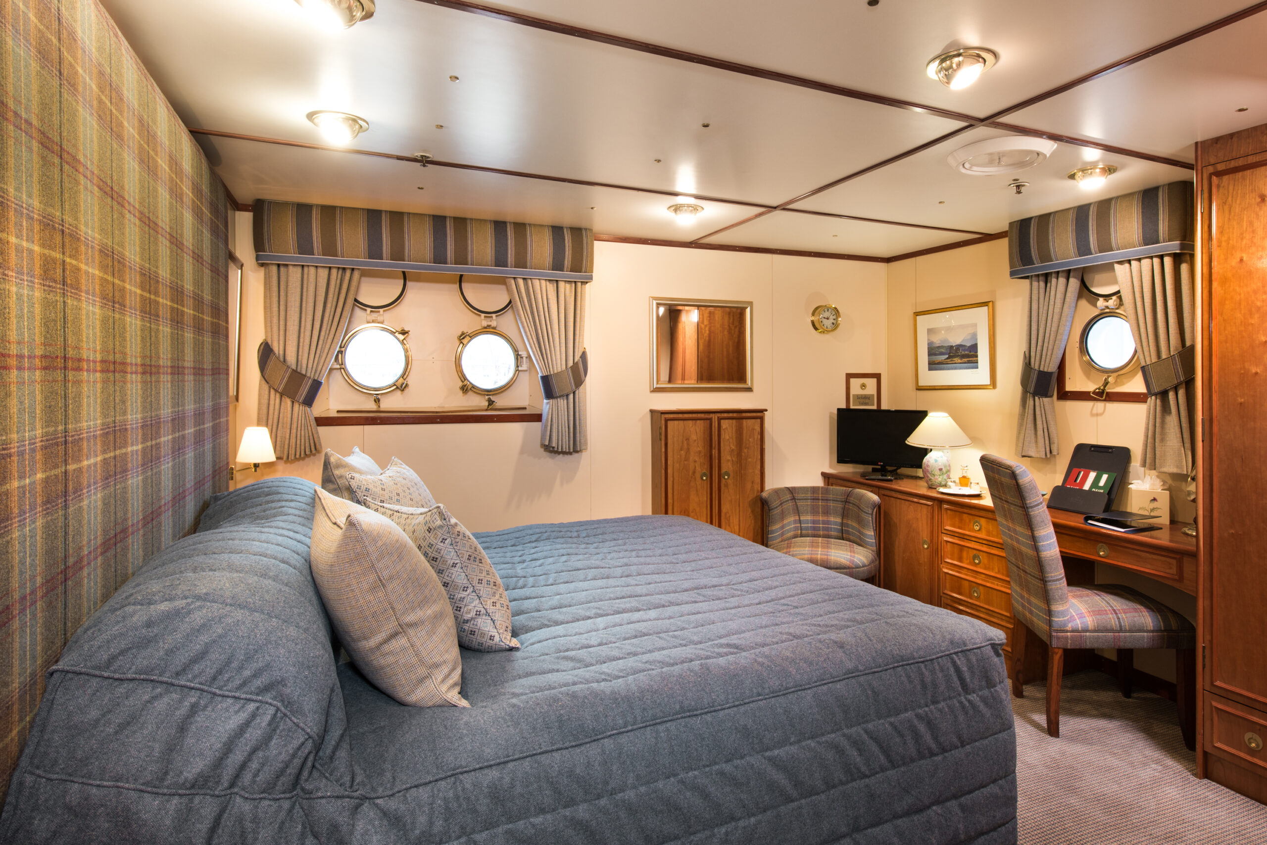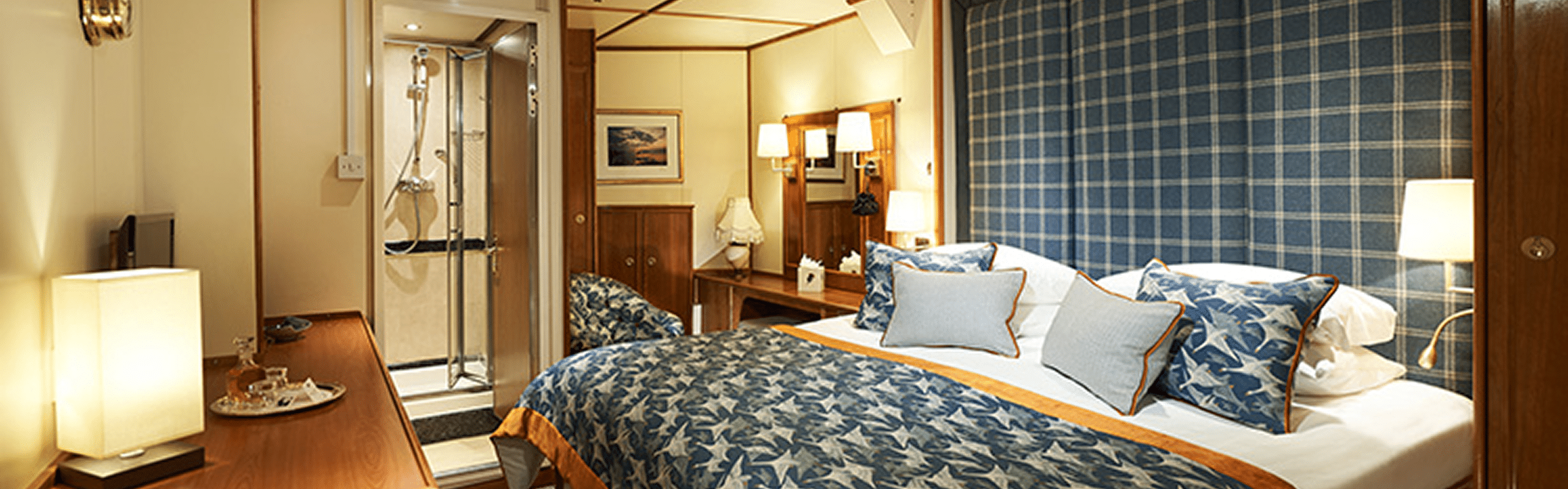 On Hebridean Princess’ lower deck, four beautiful cabins present themselves, each one full of cosy charm and inviting decor. Ever popular with returning guests, the Hebridean Deck is the perfect place to retire to after a day of exploration – and to recharge before the next.