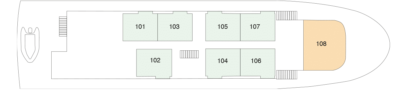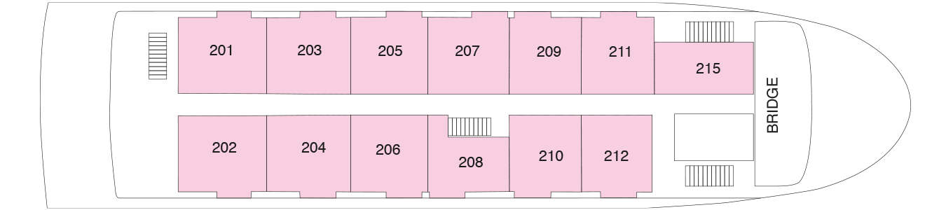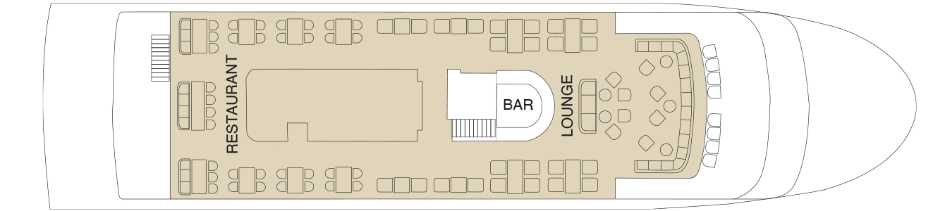 Hosting many of her cabins, The Richard Hannay Deck is where guests can relax into a peaceful night’s sleep. Complete with incredible views courtesy of their impressive picture windows, we can’t think of a better way to start your day after a refreshing, rejuvenating slumber.